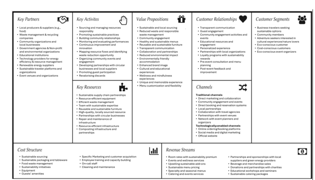 The project analyses how resources and energy flow along the HORECA value chain, identifying best practices that improve environmental performance while supporting economic viability. Rather than looking at energy use in isolation, this work adopts a life-cycle perspective, considering costs, savings, and wider non-energy benefits such as improved comfort, resilience, and competitiveness. This has resulted in the following sustainable business model: