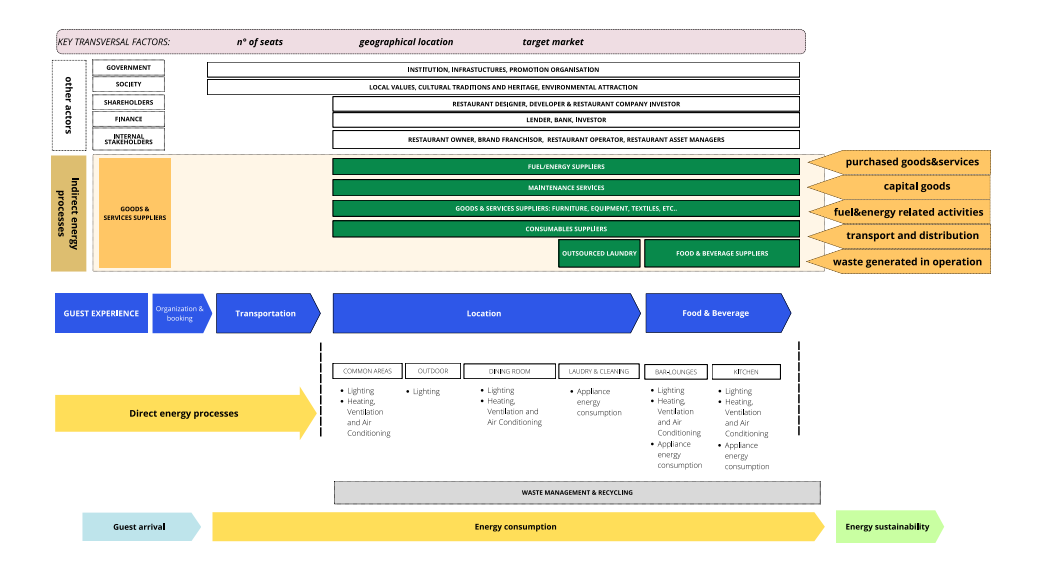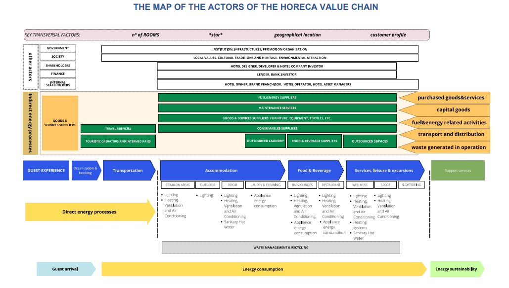 - Map of the HORECA value chains. The report is based on an analysis of energy practices within both large companies and SMEs. It presents a conceptual map of the sector from an energy perspective, aiming to identify best transferable practices that can reduce the overall energy impact.